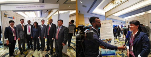 教育展的最后一站是埃塞俄比亚首都亚的斯亚贝巴。刘延平副校长与埃塞高教部部长Woldemsriam和副部长Afework Kassu Gizaw教授等高级官员进行了洽谈,介绍了埃塞学生在我校的留学情况。刘延平副校长表示,此次高等教育展将促进中埃两国人力资源领域的合作,有利于两国全面战略合作伙伴关系的发展,有助于吸引更多优秀的埃塞学生前往中国尤其是中传深造,进一步增进中非友谊。在亚的斯亚贝巴,刘延平副校长接受了中央电视台、新华社的采访,舒笑梅处长接受了CGTN记者的采访。
