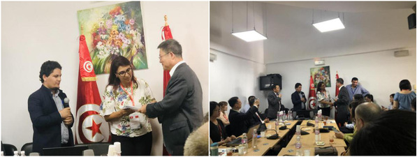 刘延平副校长指出,中国和突尼斯都拥有灿烂的文化和悠久的历史,都为人类文明发展做出过重要贡献,双方的教育合作拥有良好基础。中国传媒大学1960年创办了在坦桑尼亚等东非各国广泛使用的斯瓦西里语专业,为中国第一所创办该专业的高校。近十年来结合学校专业特色,配合商务部、外交部举办了“发展中国家国际传播硕士研究生班”“非洲国家记者研修班”等多种教学和科研活动,为包括突尼斯在内的非洲国家培养了大批新闻传播和语言人才,相信此次参展能为中突高教合作带来更加光明的前景。
