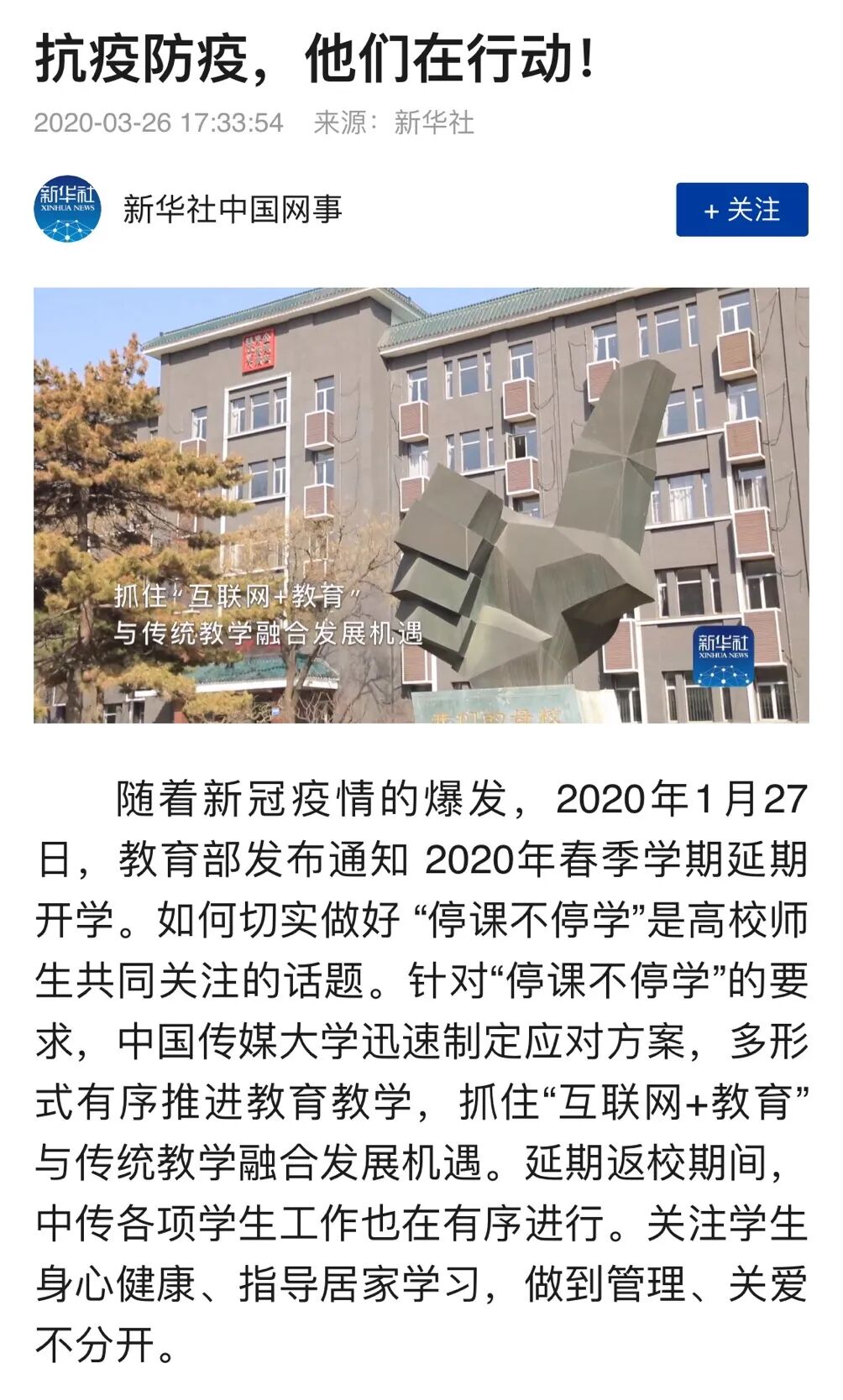 学校根据疫情发展态势和上级工作部署,结合不同时期的工作实际,及时作出工作安排,包括推迟艺术类专业复试时间,推迟春季开学时间,要求全体学生居家防控、不得提前返回学校,开展大规模线上教学、网上指导等等。这些举措既保护了师生安全,又妥善应对延期开学对教学等工作造成的冲击。