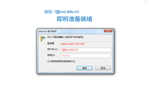 第六步:输入您的邮箱账号密码信息,点击确定。