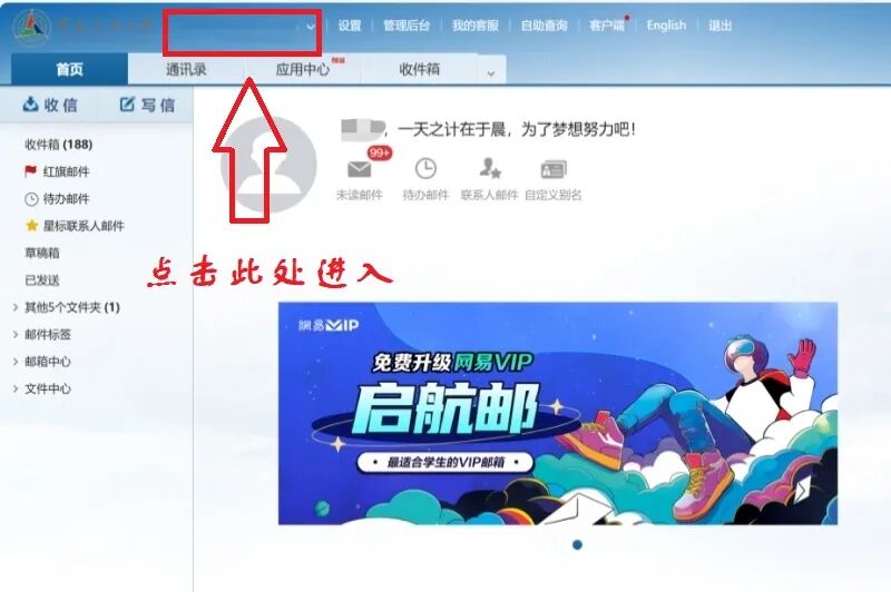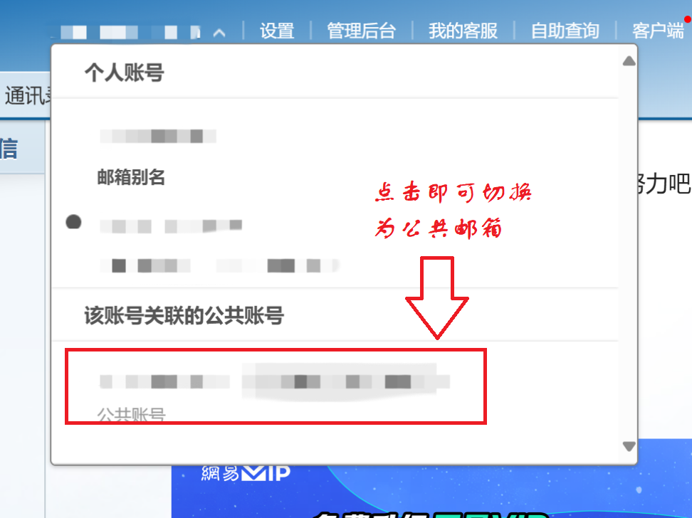 公共邮箱申请成功后,若想进入公共邮箱,可先进入“中传邮箱主页”后,先登入个人邮箱,点击左上方的邮箱地址处,可进行个人邮箱与公共邮箱的切换。