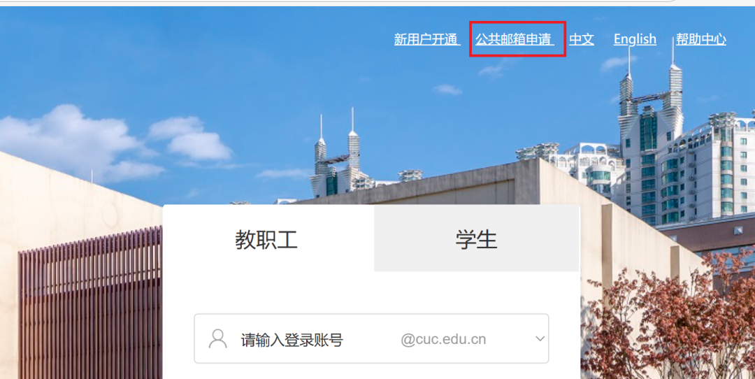 教职工邮箱名为“ 学工号+@cuc.edu.cn”;