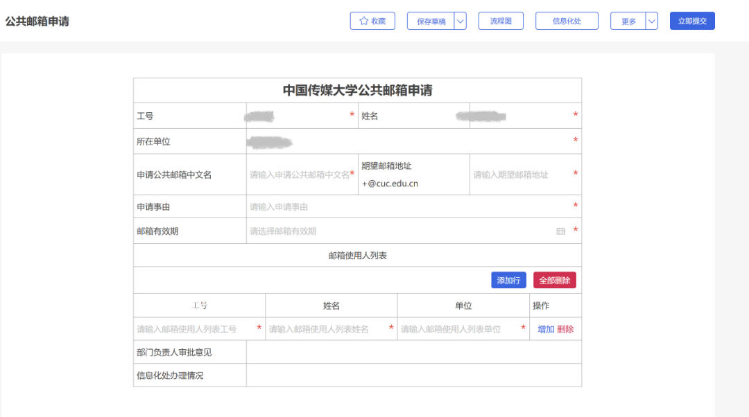 执行前文第一步,申请类型选择“公共邮箱申请”,选择右上角“立即申请”(同一部门邮箱可申请多个部门邮箱)