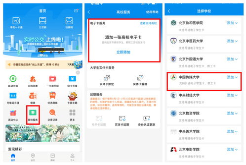 开通成功后,在北京一卡通APP首页点击“高校服务”或“手机一卡通”,可以查看卡片详情。