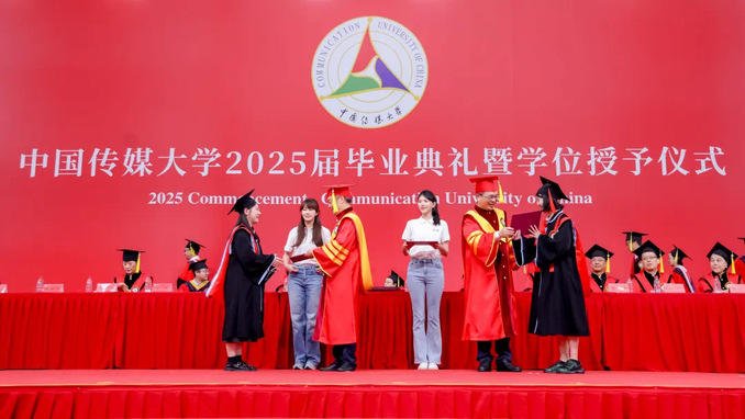 6月15日午前、中国伝媒大学2025年度卒業式および学位授与式が学生活動センターで盛大に開催されました。