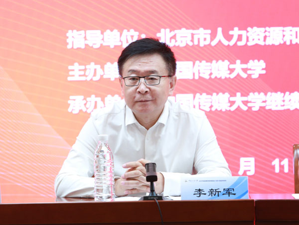 李新军在致辞中向北京市人力资源和社会保障局对我校的信任与支持表示衷心感谢,对各位领导、各位学员的到来表示诚挚欢迎。他介绍了我校办学特色、近年来在服务国家重大战略方面进行的布局及继续教育事业等领域取得的成绩,深刻阐述了继续教育、终身学习的重要性和必要性。李新军表示,继续教育是提升全民素质、服务经济社会发展的重要途径,也是推动终身学习、构建学习型社会的重要举措。学校将充分发挥好国家级专业技术人员继续教育基地的作用,为北京市乃至全国的继续教育事业做出更大的贡献。