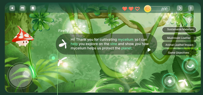 제작팀은 혁신적인 게임 형식을 통해 사람들이 생물 다양성과 지속가능한 소재의 중요성에 관심을 갖도록 유도하고자 했다. 게임은 온라인 가상 체험과 오프라인 실천 활동을 융합했다. 플레이어는 현실에서 균사체 성장 과정을 기록해야 하며, 이러한 내용은 게임 진행 상황으로 전환되어 다양한 단계의 환경보호 임무와 교육 콘텐츠를 해제한다. 다양한 동물 캐릭터를 구하는 과정을 통해 플레이어는 버섯 가죽이 전통 가죽 산업에 대한 생태적 대체 의미를 직관적으로 느낄 수 있다.