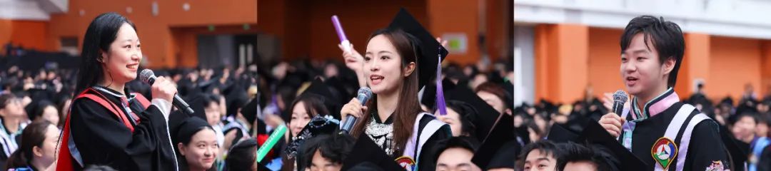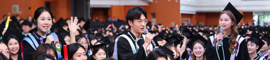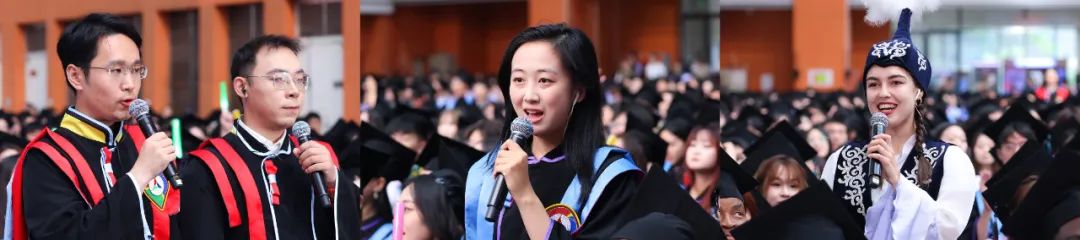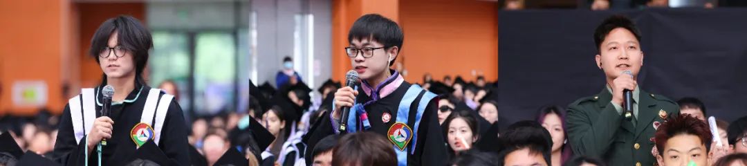 졸업식 현장에서 서로 다른 학원 출신 졸업생 대표 23명이 발언했다. 학생들은 학교의 양성에 대해 감사를 표하며 재학 기간 중의 수확과 감상을 이야기하고 미래의 계획과 비전을 공유했다. 졸업생들은 시진핑 총서기가 중전 전체 사제에게 보낸 회신에서의 간절한 당부를 명심하고, 전매보국의 적성 이상을 품고 과학기술혁신 업계 일선에 투신하며, 사회거버넌스 기층 옥토에 뿌리내리고, 뉴스여론 시대진지를 굳건히 지키며, 국제전파 사명담당을 실천하고, 실제행동으로 각 업계 최전선에 나아간다고 다짐했다.