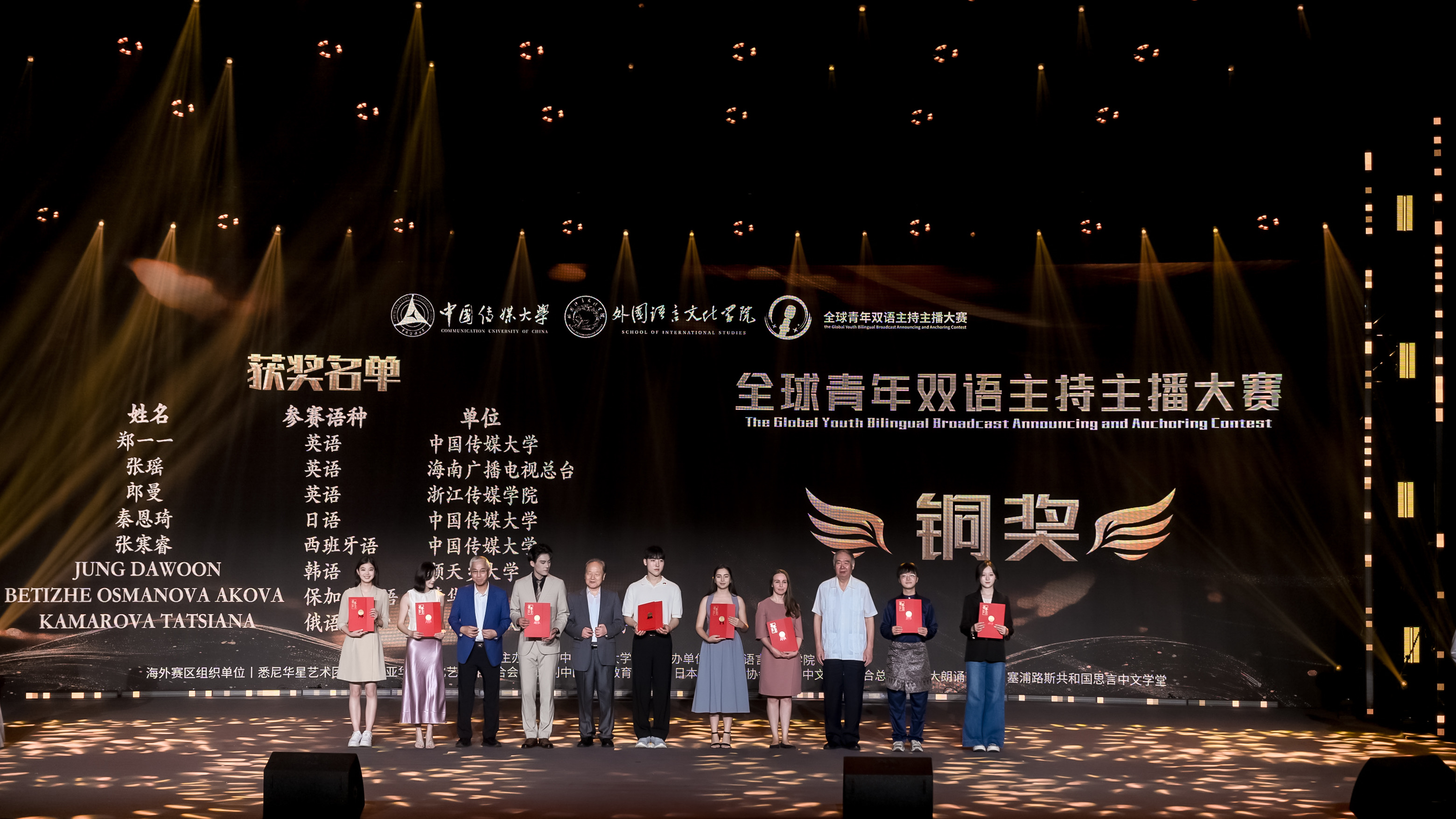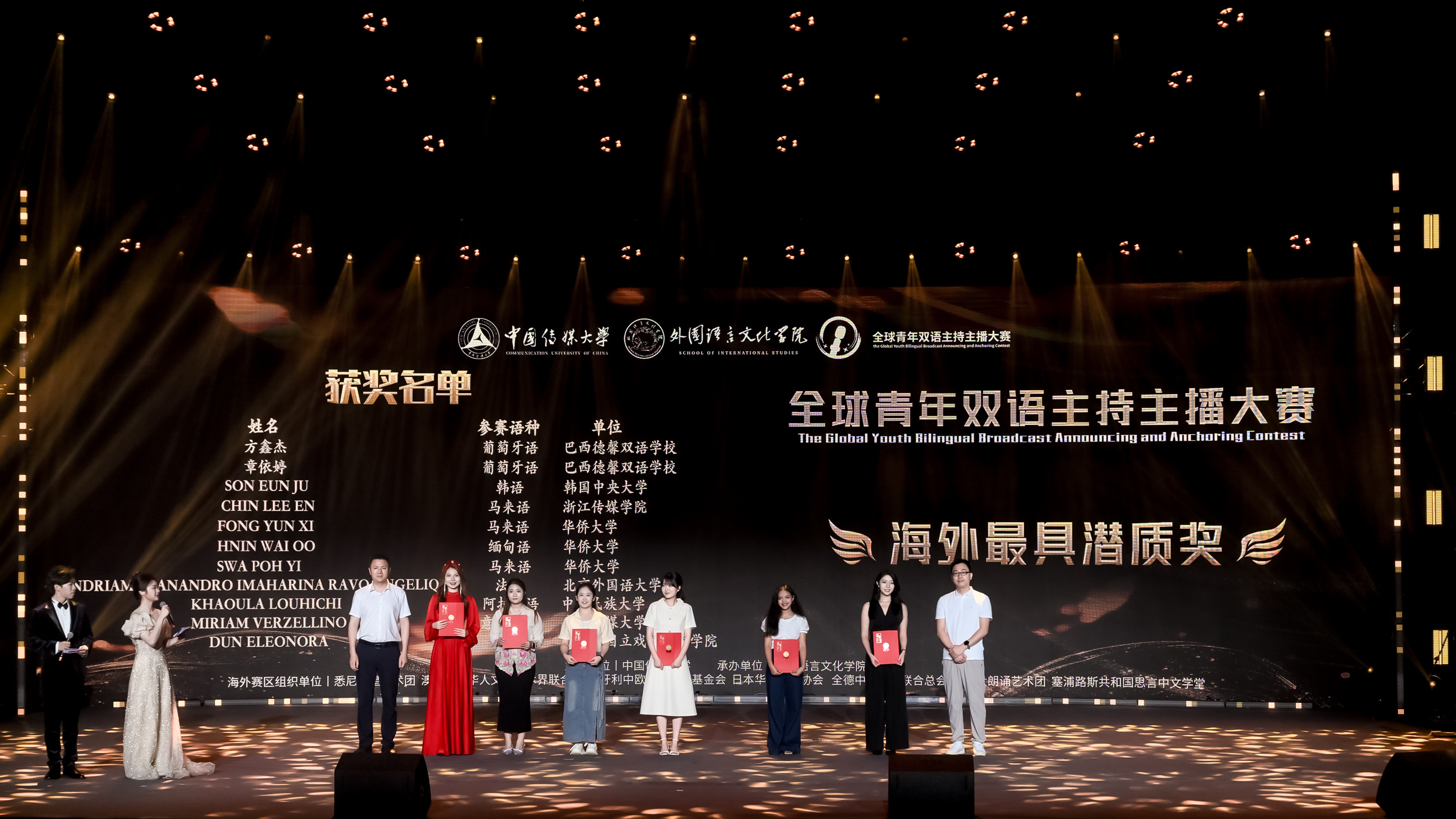 “全球青年双语主持主播大赛”搭建贯通五大洲青年的文明对话桥梁,全球参赛者以双语为媒,立体展示当代中国图景,在多元视角中传递时代脉动,于文化共振里消弭认知鸿沟。通过专业化选拔机制,大赛持续输送兼具国际视野与传播匠心的双语人才。这些新生代传播者正成为跨文明对话的关键力量,为全球文化生态注入可持续动能。中国传媒大学外国语言文化学院作为赛事承办单位,始终以推动世界文明交流互鉴为目标,致力于培养智能媒体时代的“复语、复合、复能”型高端国际传播人才。外院构建的“语言能力、跨文化传播、国际叙事”培养体系,为大赛提供了核心学术支持。此次颁奖典礼既是赛事成果的集中展现,也是学院培养“中外文化交流使者”育人成效的生动实践。