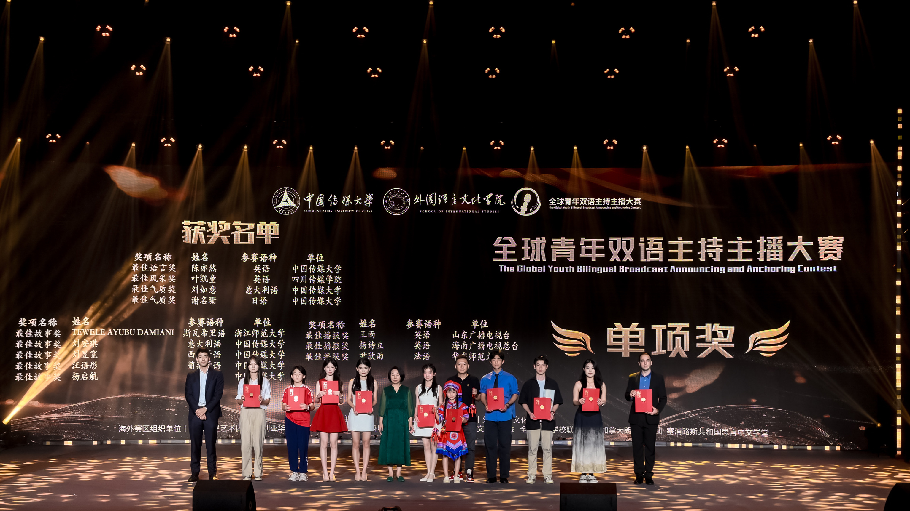 (通讯员 陈莉娜)7月12日晚,由中国传媒大学主办、外国语言文化学院承办的第三届“全球青年双语主持主播大赛”颁奖典礼在中国传媒大学中传礼堂成功举办。