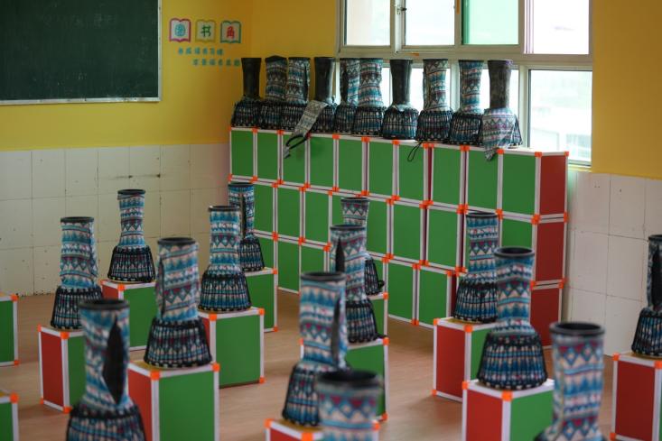 兴隆小学的ME创新计划音乐课堂内部(乐器为手鼓)