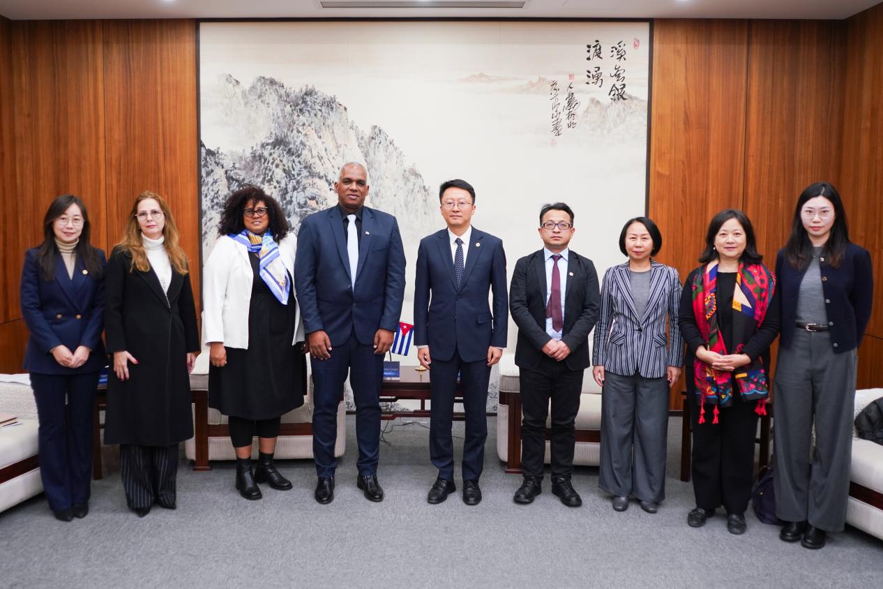 古巴高等教育部国际关系司高级专员波塔尔、古巴驻华大使馆教育处三等秘书艾琳等陪同来访。学校外国语言文化学院院长文春英、人类命运共同体研究院副院长张艳秋、国际交流与合作处处长王文渊、副处长张佩佩等参加会见。