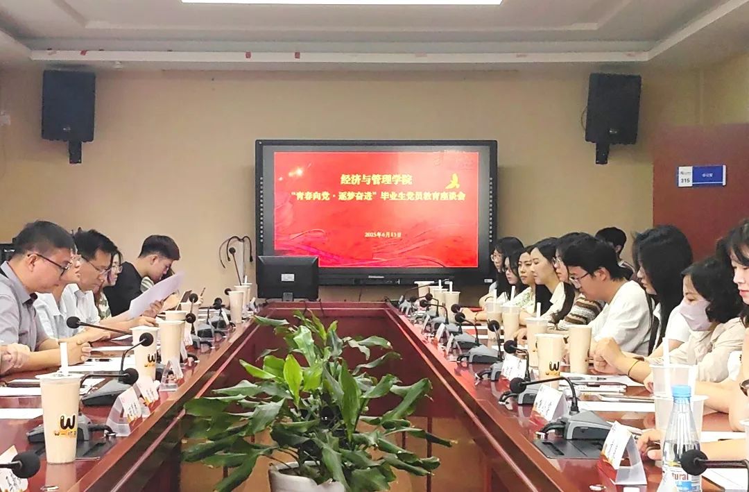 6月13日下午,中国传媒大学经济与管理学院“青春向党・逐梦奋进”毕业生党员教育座谈会在32号楼315会议室顺利召开,学院党委书记郑苏晖、党委副书记刘宏欣、辅导员王怡心参会,专职组织员毛建国主持。